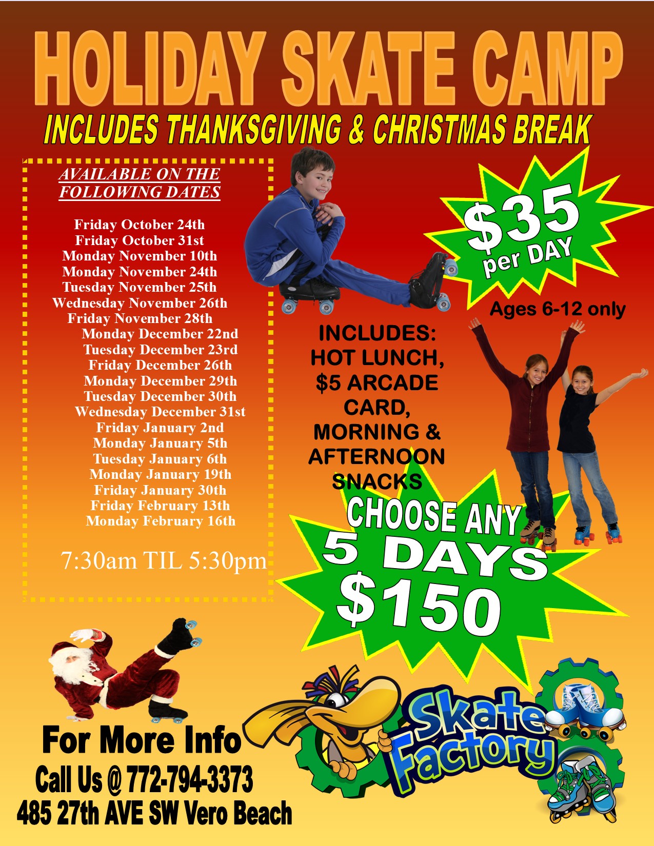 Skate Camp follows Indian River and St. Lucie County School Calendars